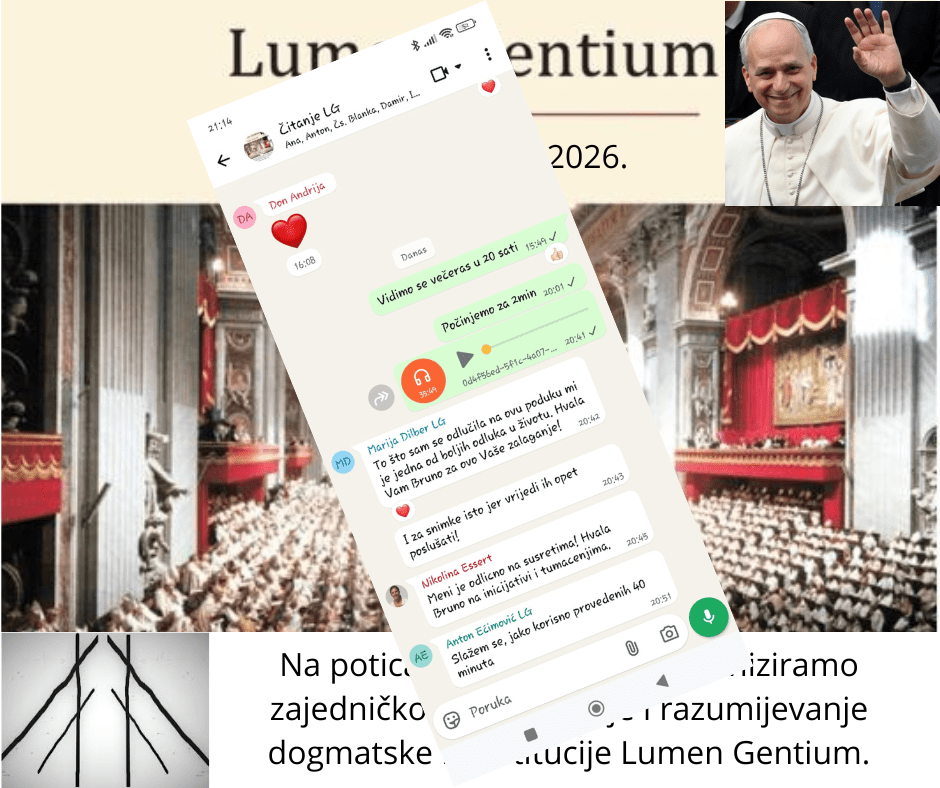 Trebalo nam je punih 12 susreta (svaki susret je trajao 35 minuta) kako bismo zajedno dovršili čitanje dogmatske konstitucije Drugog vatikanskog koncila Lumen gentium. Tjedno smo imali dva susreta, i to ponedjeljkom i četvrtkom, jer je tako odgovaralo grupi – ne maloj niti velikoj nego, rekao bih, sasvim dovoljnoj kako bi se razvila dinamika otvorenosti i bliskosti – dinamika koja je omogućila ugodno čitanje i razgovaranje o dokumentu. I nakon ove avanture moram reći da sam zahvalan papi Lavu XIV na poticaju i ljudima koji su se odazvali. Obogatili su moje teološke uvide. Njihova pitanja i komentari su mi otvorili neke nove teološke poglede na Crkvu i sam Koncil kojega mnogi ne razumiju – upravo jer nikada nisu pročitali niti jedno slovo njegovih dokumenata.